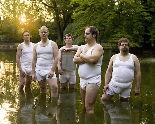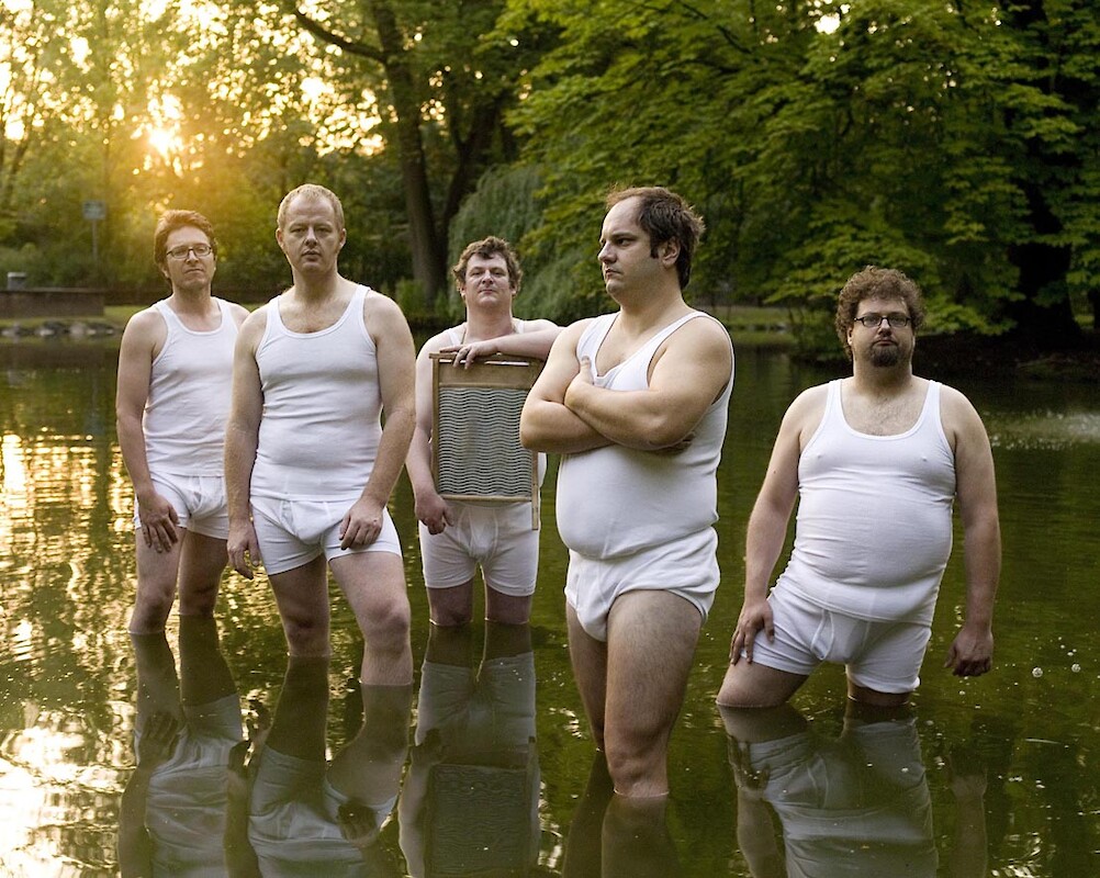 Mit Akkordeon, Gitarre, Waschbrett und Baritonsaxophon, Maultrommel, Heuler und Kamm spielen die fünf schweren Jungs der leichten Muse ihren eigenen Mainstream aus Bekennerliedern, Stadionrockhits und Volksjazzstandards.